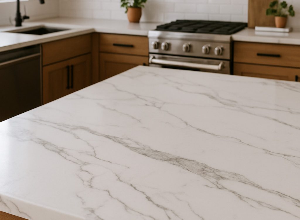Votre cuisine est le cœur de la maison, et un plan de travail ou un îlot central en marbre blanc est un choix élégant que vous ne regretterez pas.
