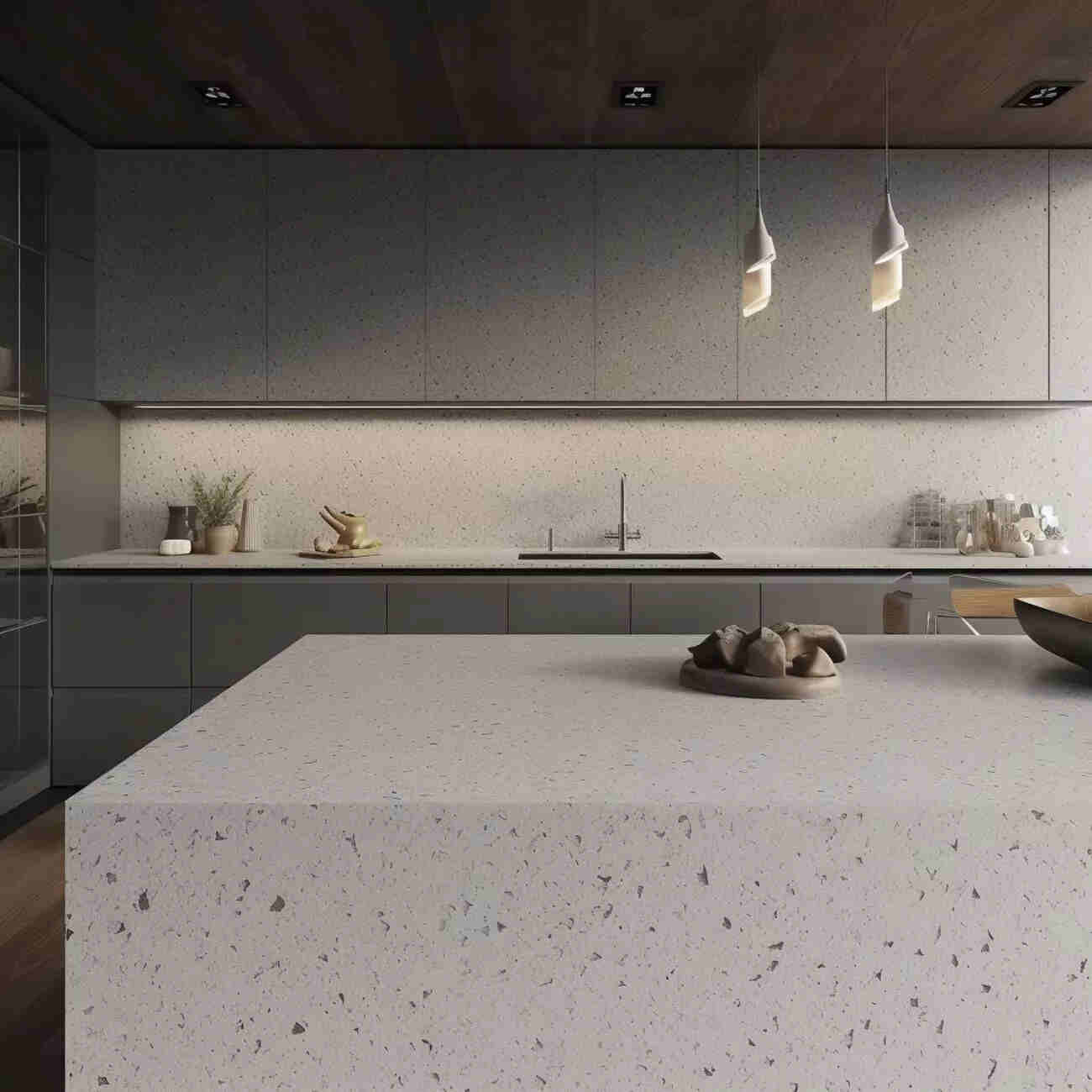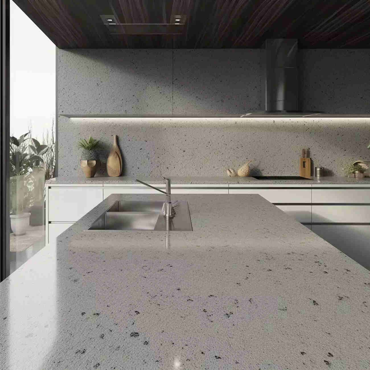 Plan de Travail en Quartz « Stellar Blanco » : Fraîcheur et Luminosité