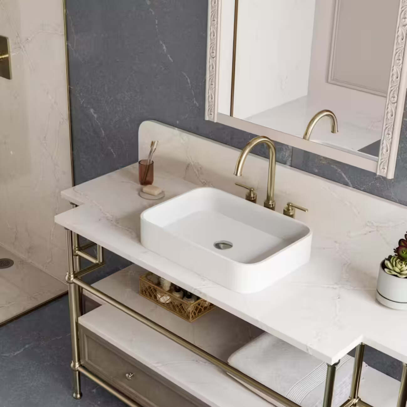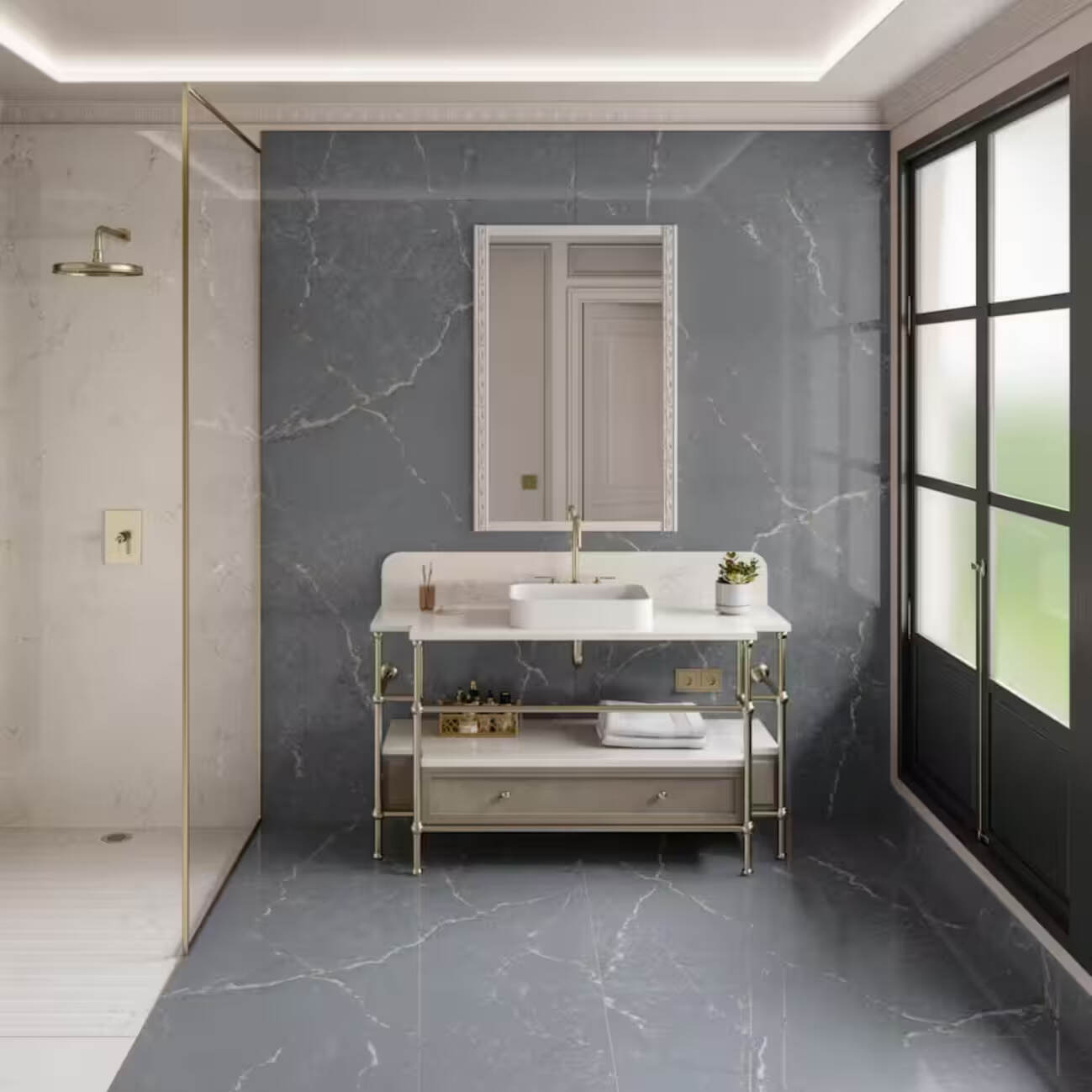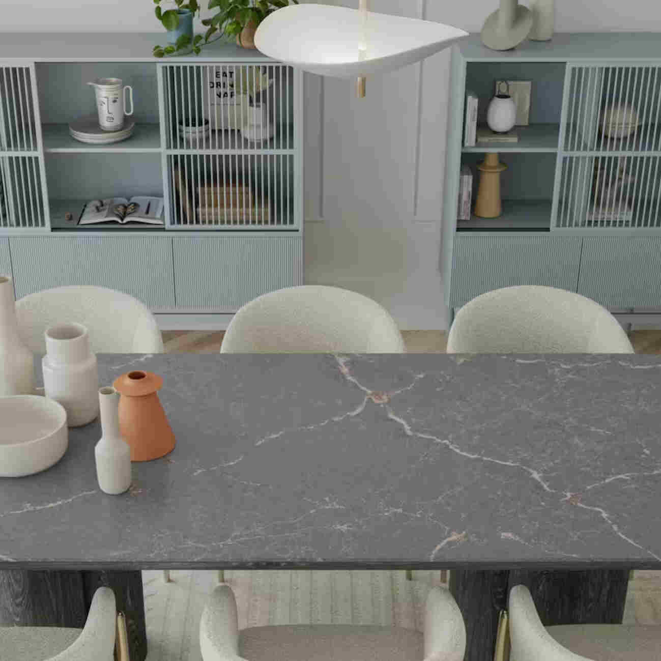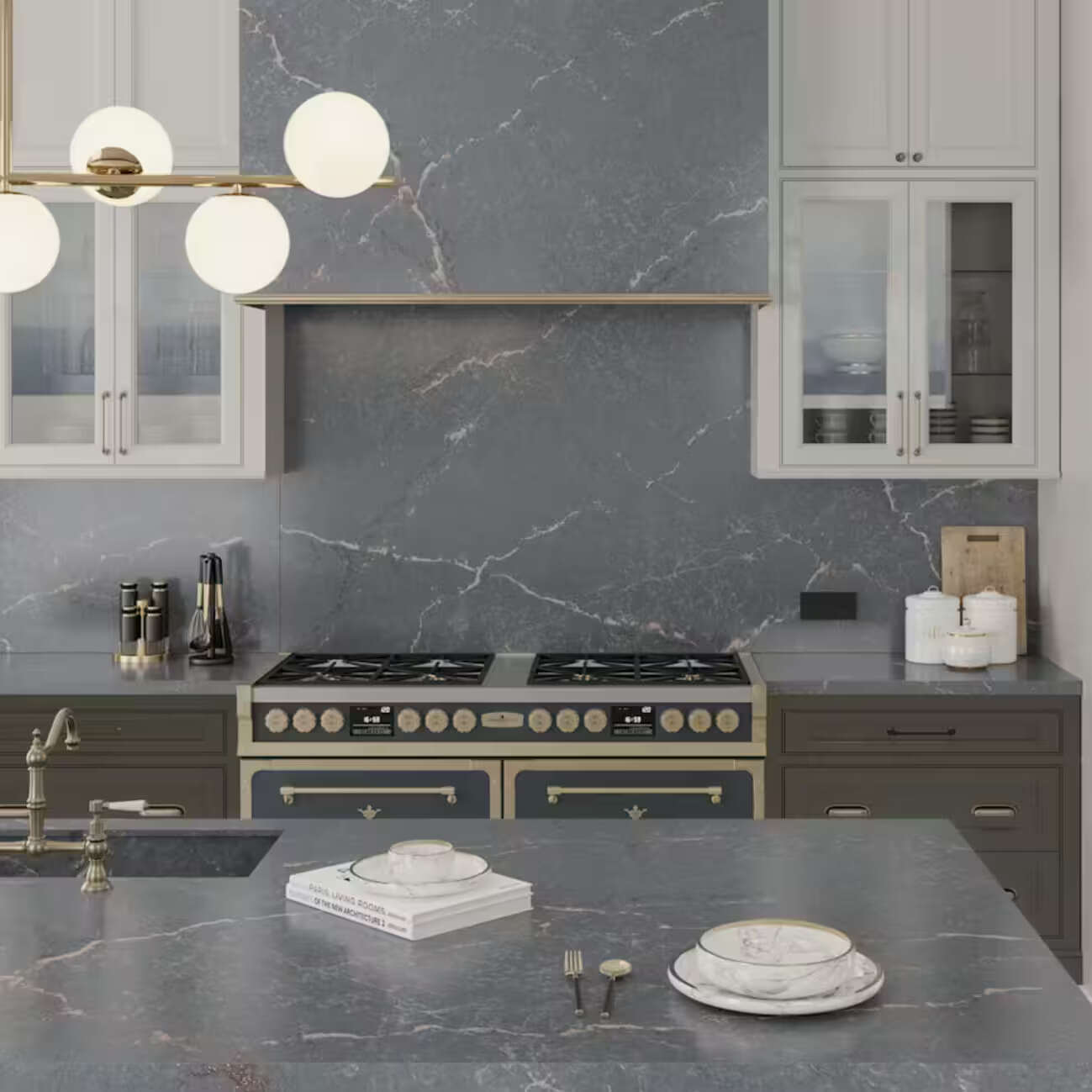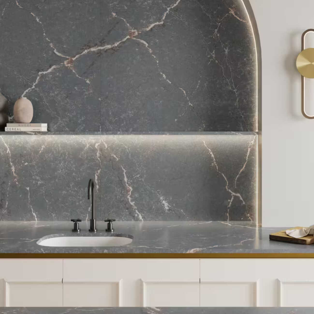 Le Plan de Travail Quartz « Bleu Parisien » n’est pas qu’une simple surface de travail ; c’est une pièce maîtresse qui transforme votre espace en une œuvre d’art vivante. Son allure élégante s’harmonisera parfaitement avec des configurations modernes, classiques ou même des designs audacieux où le contraste est recherché. C’est l’invitation idéale à créer un espace qui raconte une histoire de puissance et de beauté intemporelle.